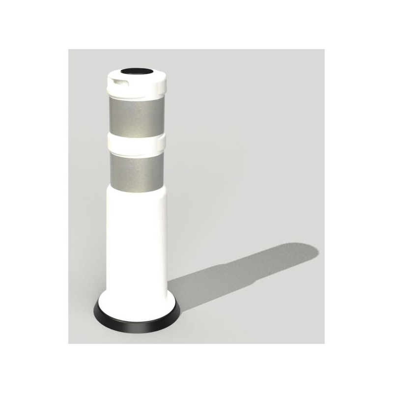 Pour un balisage de longue durée. Visible de nuit avec deux bandes rétroréfléchissantes. Reprend sa place automatiquement après un choc. Se visse au sol avec une douille métallique fournie. Prévoir un scellement dans la chaussée à l'aide d'une résine. Hauteur : 750 mm Ø : 200 mm