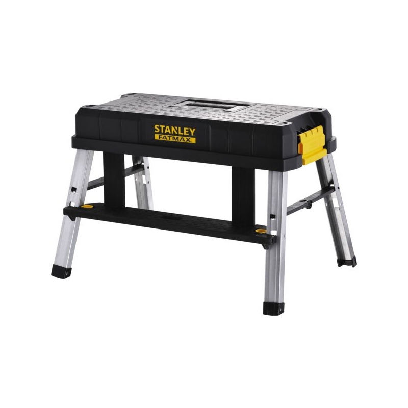 Multifonctions: boite à outil, marchepied, panier. Marchepied en plastique et métal intégré dans le couvercle de la boite à outils, avec pieds en aluminium antidérapants et boutons de blocage pour sécurisation de la marche. Le porte-outils se clipse sur le marchepied pour faciliter l'accès aux outils. Le marchepied répond à la norme EN14183. Caractéristiques de la boite à outils: Dimensions : 64 x 29,6 x 28,7 cm Capacité : 30 kg Poids à vide : 6,2 kg Caractéristiques du marchepied: Hauteur : 45 cm Capacité : 150 kg Livrée sans outils.