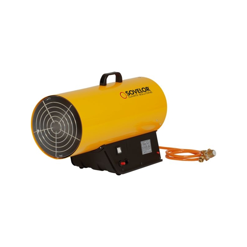 Utilisation intérieure et extérieur dans des locaux bien ventilés. Combustion directe. A commande manuelle. Équipé d'une sécurité de surchauffe, d'une sécurité stop-gaz, de 2 grilles de protection sur l'aspiration et le soufflage et d'un contrôle de flamme par thermocouple. Puissance réglable par vanne. Se fixe directement sur une bouteille de gaz propane. Alimentation : 230 V Tuyau souple, manodétendeur gaz, câble et prise électrique inclus.