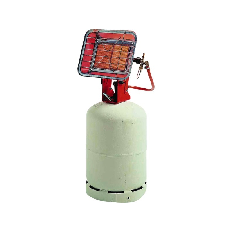 Utilisation intérieure. Orientable de haut en bas, à fixer directement sur une bouteille de propane. Allumage Piezo et poignée de transport. Puissance réglable par robinet. Sécurité par thermocouple et contrôleur d'atmosphère. Autonomie : - bouteille 13 kg : environ 40 h - bouteille 35 kg : environ 80 h Puissance calorifique : 2,8 à 4,6 kW Poids : 3,400 kg Tuyau orange à durée de vie illimitée, détendeur, support bouteille inclus.
