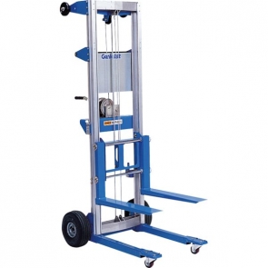 Élévation par le biais d'un treuil manuel. En aluminium léger. Installation rapide sans outils. Roulettes avant/arrière très manœuvrables, passe les portes. Grande facilité de chargement/déchargement de véhicules utilitaires. Pour faciliter la manutention de charges diverses. Norme : CE EN 280 Échelle d'accès vendue séparément.
