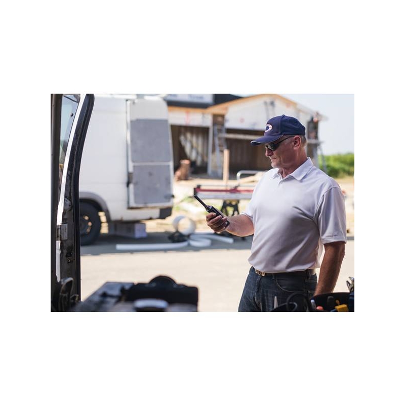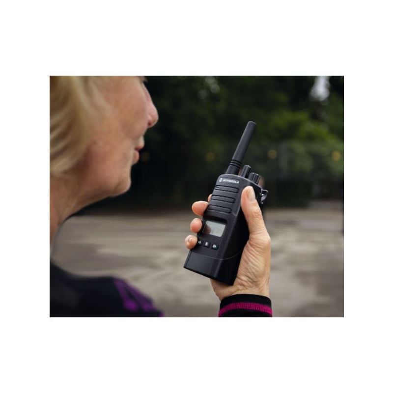 Radios bidirectionnelles compactes aux performances adaptées à une utilisation intensive en conditions difficiles. Qualité audio exceptionnelle, haut-parleur puissant, boîtier polycarbonate avec revêtement antimicrobien, batterie au Lithium Ion pour une durée de vie accrue. Autobalayage, brouillage vocal pour une confidentialité renforcée. Fonction VOX avec déclenchement automatique à la voix, permet le travail en mode mains libres. La version avec écran permet d'identifier rapidement le canal utilisé et l'état de la batterie. Fonctionne sur les fréquences PMR446 sans licence. Conforme aux spécifications militaires 810 C, D, E et F. 16 canaux et 219 codes de confidentialité au choix de l'utilisateur pour garantir un signal clair. Zone de couverture : 16250 m² et jusqu'à 9,1 km en terrain ouvert Autonomie : jusqu'à 20 h avec économiseur activé Indice de protection : IP55 Puissance audio : 1500 mW Dimensions antenne comprise (H x l x P) : 116 x 58 x 40 mm Livré à l'unité avec étui pivot rigide avec clip ceinture, batterie et chargeur. Fonctionnalités additionnelles: envoi de messages texte, possibilité de pré-enregistrer les messages, enregistrement de conversations et lecture audio.