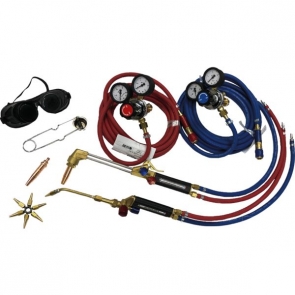Composé de : - 1 détendeur Mini Elan Oxygène 16 bar, - 1 détendeur Mini Elan Acétylène 2,5 bar, - 1 chalumeau ROC 0 sur manchettes avec raccords rapides et étoile de 7 buses débit de 63 à 400 l/h, - 1 chalumeau coupeur Mini Roc sur manchettes avec raccords rapides et 2 buses 7 et 10/10e acétylène, - 2 x 5 m de tuyaux Ø6,3x12 en oxygène et acétylène, - 1 paire de lunettes de soudeur, - 1 allume-gaz à coupelle.