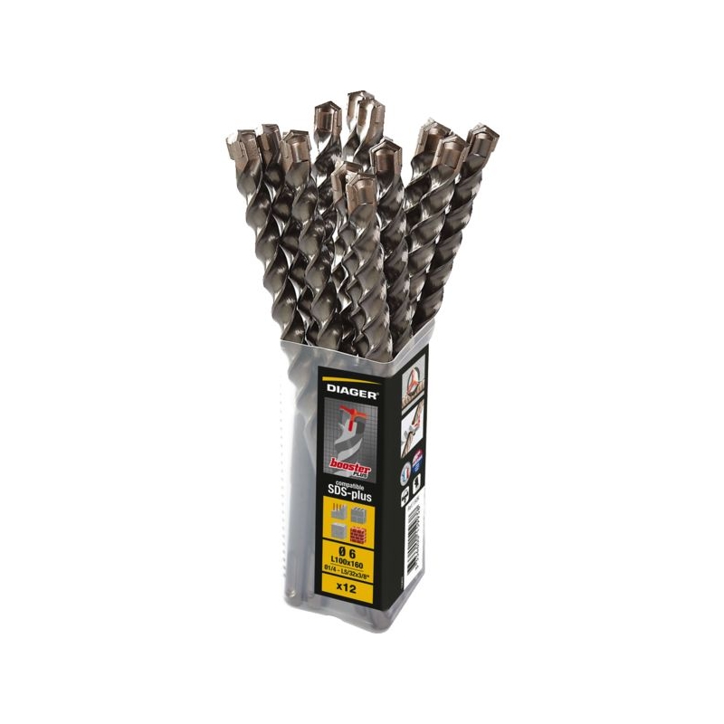 Pour béton, béton armé, pierre, granit, brique pleine. Plaquette carbure. 3 taillants monobloc 115°. Pointe auto-centrante. Hélice carrée. Résiste aux fers à béton et effet burinage pour l'éclatement du béton. 3 goujures pour accélérer l'évacuation de la poussière.