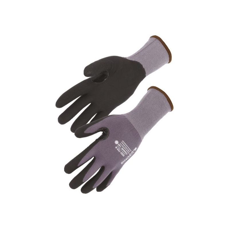 Paume enduite de nitrile mousse. Renfort nitrile entre le pouce et l'index. Support tricoté sans couture en fibres polyamide et élasthanne, jauge 15. Dos aéré, poignet élastique avec liseré. Label Oekotex Manipulation légère / Milieu humide Applications métiers : entretien, maintenance, second œuvre, mécanique de précision, assemblage de petites pièces, assemblage automobile, transport Taille : 6 à 11 Norme : CE Cat II - EN 388 (4131X) - EN 407 (X1XXXX)