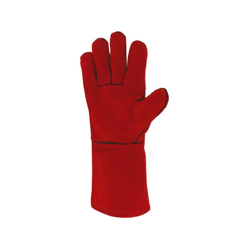 Tout croûte de bovin, coutures Kevlar. Cuir tout croûte de bovin. Paume et dos entièrement doublée molleton. Montage américain (pouce palmé), dos d'une pièce. Coutures en fil aramide renforcées par un passepoil. Manchette entièrement doublée toile coton, liseré en bordure. Risque chaleur et/ou feu Manutention lourde / Milieu sec Applications métiers : soudage manuel, métallurgie, sidérurgie, démoulage de pièces, travaux à proximité des fours Longueur : 350 mm Épaisseur : 1,10 mm Taille : 10 Norme : CE Cat II - EN 388 (3133X) - EN 407 (413X4X) - EN 12477 type A