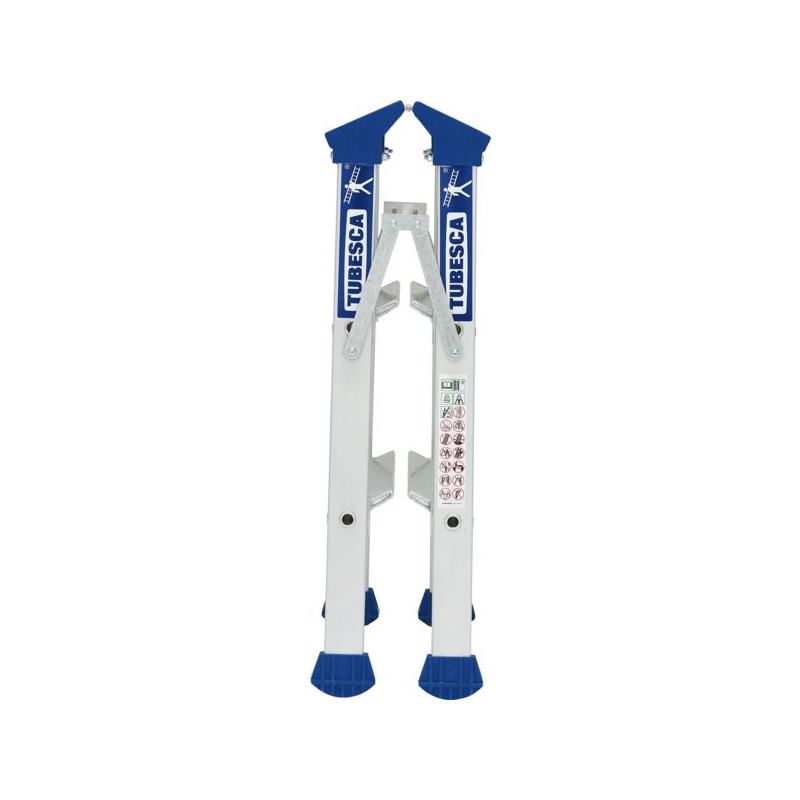 Utilisation en intérieur. En aluminium. Marches de 90 mm. Montants de 70 mm. Plateforme de 350 x 220 mm. Barre anti-écartement. Sabots enveloppants haute sécurité. Charge maxi. : 150 kg Norme : EN 131 - décret 96 333