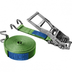 Arrimage 2 parties avec tendeur à cliquet inversé permettant une force d'arrimage maximale sans effort. Avec le tendeur traditionnel, il faut soulever le levier pour tendre la sangle. Sur le tendeur inversé, il suffit de baisser le levier pour effectuer la tension. TMU : 2500 kg Rupture de sangle : 7,5 t Longueur/largeur : 9 m/50 mm Norme : EN 12195-2