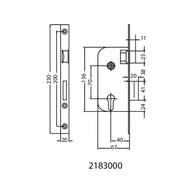 Clé I, profil européen. Réversible sans démontage. Gâche à commander séparément. Conforme à la norme NF EN 12-209. Dimensions du coffre : Axe 40 : 136 x 67 mm Axe 50 : 136 x 77 mm Entraxe : 70 mm Fouillot carré : 7 mm Têtière à bouts ronds : 230 x 20 mm Finition : époxy noir Conditionnement : boite Colisage : 10 pièces
